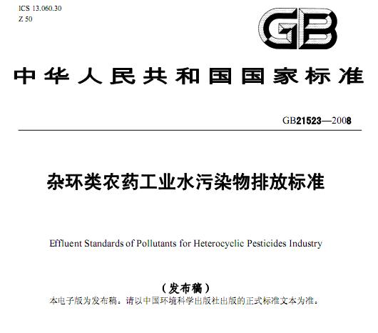 為貫徹《中華人民共和國環境保護法》、《中華人民共和國水污染防治法》和《國務院關于落實科學發展觀 加強環境保護的決定》,加強對農藥廢水的產生和排放控制,促進農藥工業技術進步,改善環境質量,保障人體健康,制定農藥廢水排放標準——《雜環類農藥工業水污染物排放標準》。