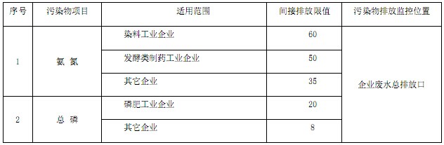 工業企業廢水氮、磷污染物間接排放限值