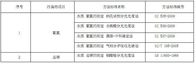 表2 污染物項目的測定方法
