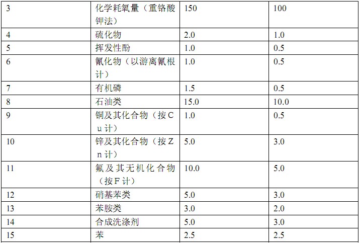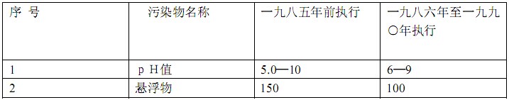 注:①懸浮物:造紙,制糖,1985年前<300mg/L,1990年前<200mg/L;水力排炭、洗煤、尾礦水1985年前<500mg/L,1990年前<300mg/L。