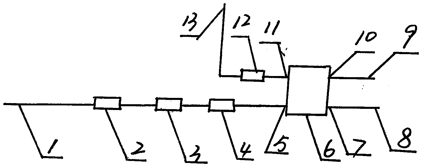 1.一種回收熱能和回收廢水設(shè)備,包括過濾器、水泵、細(xì)孔過濾器、熱交換器、水流開關(guān)和連接管件,其特征在于:過濾器的進(jìn)水口和廢熱水接口通過管件連接,過濾器的出水口和水泵的進(jìn)水口通過管件連接,水泵的出水口和細(xì)孔過濾器的進(jìn)水口通過管件連接,細(xì)孔過濾器的出水口和熱交換器的接口1Q通過管件連接,熱交換器的接口2Q和廢水回收水箱的進(jìn)水口通過管件連接,熱交換器的接口3Q和補(bǔ)入水接口通過管件連接,熱交換器的接口4Q和水流開關(guān)的進(jìn)水口連接,水流開關(guān)的出水口和熱水器或者鍋爐或者熱水水箱的進(jìn)水口連接,水流開關(guān)用來控制水泵工作,過濾器、細(xì)孔過濾器和水泵工作可以回收廢水;在使用熱水并產(chǎn)生廢熱水時,熱水器或者鍋爐或者熱水水箱需要補(bǔ)水,廢熱水經(jīng)過過濾器、細(xì)孔過濾器過濾和水泵加壓后,廢熱水和補(bǔ)入水先在熱交換器內(nèi)部不同管道中反向流動,熱交換后補(bǔ)入水被加熱升溫,回收熱能。