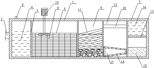 2.根據權利要求1所述的高效污水處理箱,其特征在于:所述填料采用爐渣或玻璃鋼。