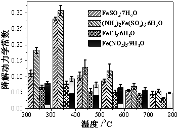 本發明中,所述鐵鹽為FeSO4•7H2O、(NH4)2Fe(SO4)2•6H2O、FeCl3•6H2O或Fe(NO3)3•9H2O中任一種。