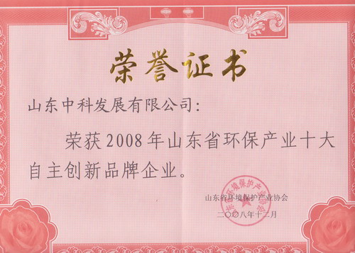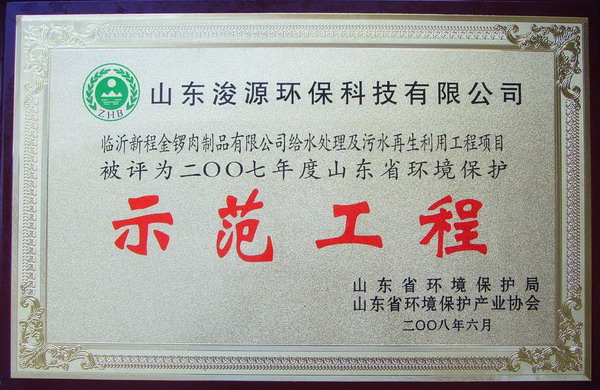 3、 榮獲2008年山東省環境保護局、山東省環保產業協會環保示范工程