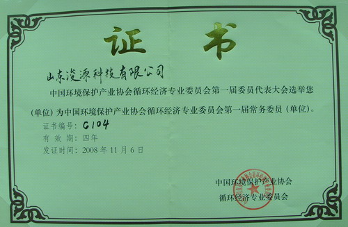 1、 中科發展、浚源科技任中國環保產業循環經濟委員會常務委員(單位)