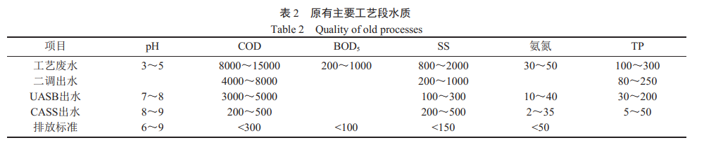 目前污水處理系統處理水量為 1730m3/d,廢水根據其產生情況分為工藝廢水、生活污水和其他生產廢水。各項具體水質見表 1。