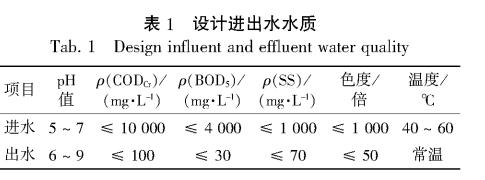 該項目檳榔廢水設計處理量為1000m3/d。通過對檳榔廢水的水質進行綜合分析,主要含C0Dc則、SS等污染物,具有色度大、溫度高、SS濃度高、有機物濃度高等特點,是一種典型的高濃度有機廢水。該廢水經處理后出水水質達到GB8978—1996—級排放標準。設計進出水水質見表1。