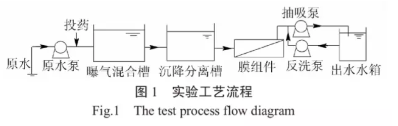 實驗所使用的無機陶瓷平板膜由日本某公司提供,膜材質為三氧化二鋁,膜孔徑為0.1μm,膜面積為0.04m²。過濾方式抽吸式,工作通量為1670L/(m²·h)(40m³/(m²·d))。膜片運行周期為每抽吸11min反沖洗1min。整個工藝由PLC系統自動控制。