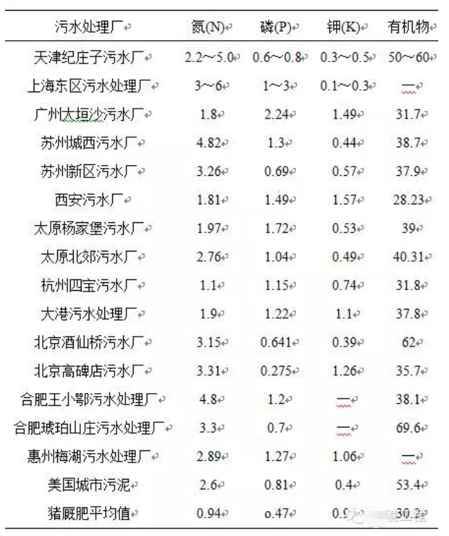 表2中國部分城市污水處理廠的污泥所含營養物質(%)-