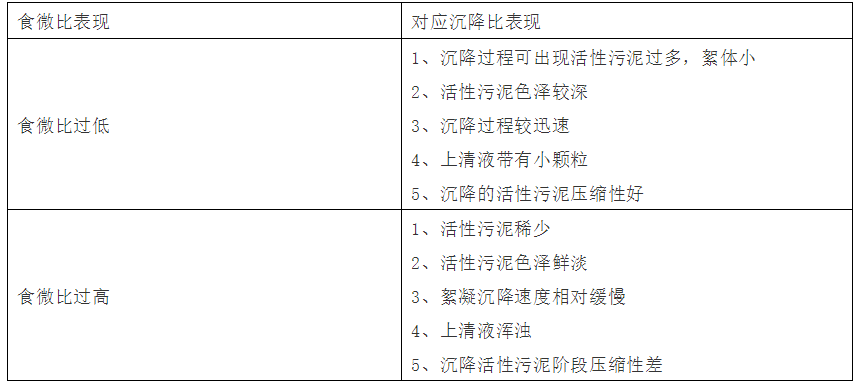 (2)與溶解氧的關(guān)系:食微比過低時(shí),活性污泥過剩,過剩部分污泥的呼吸消耗的氧量大于分解有機(jī)物需要的氧,但總需氧量不變,氧的利用率降低,形成功率的浪費(fèi)。食微比過高,系統(tǒng)需氧量上升造成供氧壓力,超過系統(tǒng)供氧能力時(shí)造成系統(tǒng)缺氧,嚴(yán)重的將引起系統(tǒng)癱瘓。