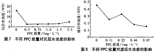 上述結果說明PPC預氧化具有助凝、助濾、除濁作用。