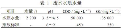 該企業廢水主要來自于粗餾塔酒糟廢水、精餾塔余餾水等廢水,廢水水質和水量如表1所示。設計出水水質須達到當地城市污水處理廠接管標準。