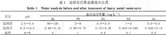 (3)處理后廢水水質與運行效果。處理后廢水水質見表1。該廢水處理工程從1985年運行至今,經過幾次改造,處理后廢水92%達標排放。具有工藝流程簡單合理、設備不復雜、運行效果穩定的特點。另外,可回收含鋅25%~30%的中和渣,達到了環境效益和經濟效益的統一。谷騰水網