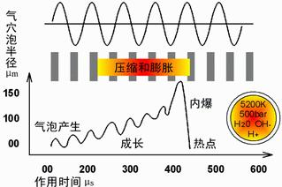 超聲波作用下的污泥不斷被壓縮和膨脹,使內部可產生氣穴泡,且不斷成長并最終共振“內爆”產生超高溫(5000℃)、高壓(500 bar),同時產生的強力水噴射流形成巨大的水力剪切力,對污泥絮體結構與污泥中微生物細胞壁產生巨大的破壞(下圖),使細胞質和酶從細胞中溶出,使污泥 的物理、化學和生物性質發生不同程度的改變,從而有益于污水廠運行及污泥處置。