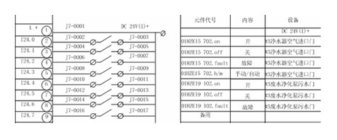 電廠污水處理控制系統(tǒng)的輸入輸出信號(hào)主要分成4個(gè)部分,放在三個(gè)相連的導(dǎo)軌上: