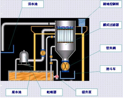 該系統流程中的主要關鍵設備有:膜式過濾器(包括濾元、濾袋)、管夾閥、控制裝置等。