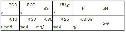 出水執(zhí)行城鎮(zhèn)污水處理廠污染物排放標(biāo)準(zhǔn)(GB18918-2002)中二級(jí)標(biāo)準(zhǔn)。具體出水指標(biāo)為: