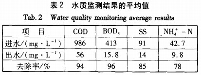 該工程經(jīng)過(guò)一個(gè)月的調(diào)試,于2007年12月10日正式投入運(yùn)行,至今已經(jīng)運(yùn)行1O個(gè)月。在整個(gè)運(yùn)行期問(wèn),處理效果穩(wěn)定。對(duì)進(jìn)、出水水質(zhì)進(jìn)行了長(zhǎng)期監(jiān)測(cè),近期監(jiān)測(cè)結(jié)果的平均值見(jiàn)表2。