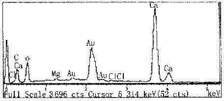 從圖3a的照片來看,污染層上還分布有很多大小不一的白點(diǎn),估計(jì)是無機(jī)元素形成的沉積物。利用FESEM-EDS對(duì)上述物質(zhì)進(jìn)行了成份分析,結(jié)果見圖4。圖4表明這些污染物質(zhì)是無機(jī)垢體,主要是 Ca,其次是Mg。認(rèn)為主要來源于配水所用自來水中的Ca2+和Mg2+。很多研究結(jié)果表明,在膜過濾過程中Ca元素對(duì)膜污染起重要作用,一方面Ca鹽溶解度小,容易在膜面發(fā)生濃差極化而沉淀析出,如CaCO3,CaSO4;另一方面,Ca會(huì)改變水中許多污染物質(zhì)的存在形態(tài)而影響膜污染[2]。