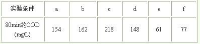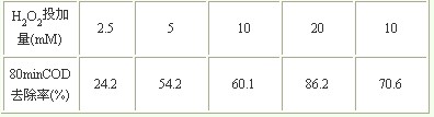 表2 不同H2O2用量下80min的COD去除率