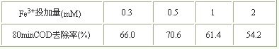 表3 不同Fe3+用量下80min的COD去除率