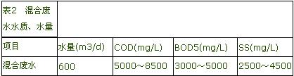 廢水經廠內地下網匯集到廢水處理站,混合廢水的水質、水量見表2。
