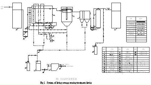 污水回用處理裝置系統(tǒng)如圖1所示,占地約20m2,污水水源為上海建科院莘莊園區(qū)包括環(huán)境實驗樓在內(nèi)的幾棟建筑的全部建筑污水和部分幕墻測試中心的沖墻排水及雨水,設(shè)計承擔(dān)處理水量為20m3/d。