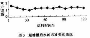 經(jīng)超濾膜處理后水的SDI變化見圖3。