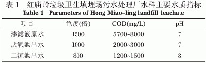 實驗所處理垃圾滲濾液取自福州市紅廟嶺垃圾衛生填埋場污水處理廠,各池出水水質如表1所示。