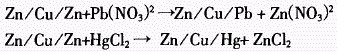 高純銅鋅合金濾材處理重金屬離子的化學反應式如下: