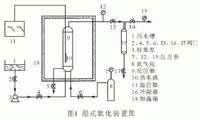 HCA-100標準COD消解器,姜堰市光大儀器廠;PHS-10A型離子數字式酸度計,上海高鴿工貿有 限公司;濕式氧化反應裝置見圖1所示,實驗溫度誤差±0.5℃。