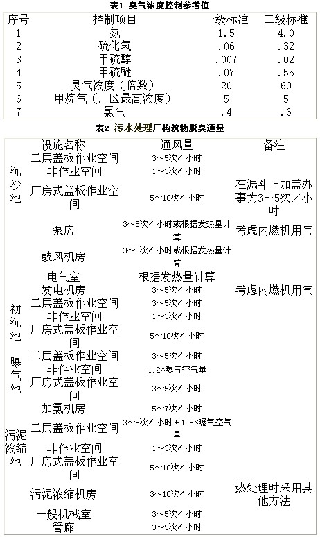 污水處理廠臭味的處理方法有很多,如直接焚燒法、催化劑氧化法、酸堿洗凈法、臭氣氧化法、化學吸附法、活性碳物理吸附法、生物脫臭法、土壤脫臭法等,但經濟實用的還屬生物除臭技術。當采用排風換氣時脫臭時,污水處理廠處理構筑物通氣量可參考表2數值。本文將對土壤法、生物法、離子法簡單論述。
