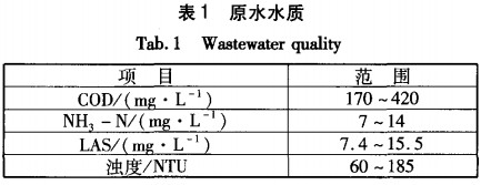 原水為學生宿舍的盟洗廢水,其水質見表1