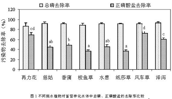 研究結(jié)果表明:8 種挺水植物中除了水蔥和紙莎草在對葉綠素a 的去除能力上表現(xiàn)為負值外,其余情況均能在一定程度上改善水環(huán)境質(zhì)量。8 種挺水植物在去除總磷及總氮上表現(xiàn)為無顯著差異,P<0.05; 在對正磷酸鹽的去除率上,再力花、風(fēng)車草、澤瀉的效果明顯優(yōu)于其余植物;在對硝氮的去除率上,梭魚草、再力花、風(fēng)車草的效果較優(yōu);在去除水體中葉綠素a 的能力上,再力花、香蒲、風(fēng)車草表現(xiàn)較強。比較分析發(fā)現(xiàn),再力花、風(fēng)車草在各方面表現(xiàn)的能力均較強,可以更高效地修復(fù)富營養(yǎng)化水體。來源:谷騰水網(wǎng)