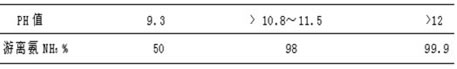 (1) 用石灰乳調節(jié)pH值在不同值條件下,氣體的存在狀態(tài)也不同,只有以游離的氣體形式存在才能被吹脫,游離NH3與PH值的關系如下表所示: