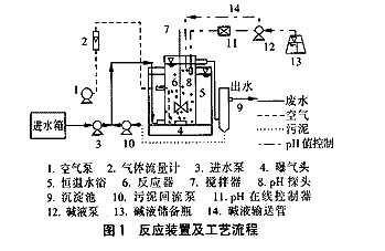 廢水經由進水從水箱中提升進入反應器底部,經反應后從出水口進到沉淀池中,沉淀后的上清液排走,污泥則經污泥回流進入反應器底部。空氣通過氣,經氣體流量計控制氣量后進入反應器。反應器置于恒溫水浴[(35±1) ℃]中。試驗中采用了pH在線控制,通過自動投加Na2CO3溶液將pH值控制在7.0~7.8。