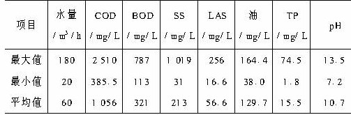 廣州某大型日用化工廠的主要產品有香皂、洗潔精、洗衣粉等日用洗滌用品,其生產綜合廢水來自5個生產車間和少量生活污水,這5個生產車間分別是洗衣粉、磺化、甘油、香皂、液體洗潔精車間,其中香皂車間洗罐水的水量最大。這些廢水組成復雜,含有大量的表面活性劑LAS、油、TP,且排放不均。總結工廠1999年1~5月的運行記錄得到工廠的水質水量如表1。