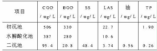 (4)原廢水經過混凝處理,可以去除大部分的懸浮物和膠體物質,從而大大降低了廢水的COD和LAS,為解決泡沫問題提供了有利條件。經過水解酸化處理,剩余LAS的53 .3%得到去除,同時使廢水的BOD/COD上升到0 .72,為生物接觸氧化處理提供了良好的條件。