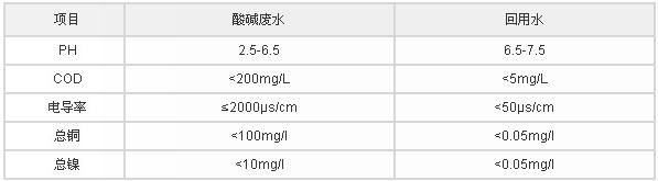 經處理后出水達到PCB用水標準,具體見下表