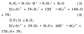 純品與六價(jià)鉻的投藥比略大于1,工業(yè)售品的質(zhì)量分?jǐn)?shù)一般在40%左右,其反應(yīng)式為: