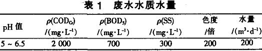 廢水來源于生產車間的蒸煮廢液以及藥材清洗、車間沖洗水、冷卻水等。廢水中主要含有各種天然有機物,包括糖類、有機酸、苷類、蒽醌、木質素、生物堿、單寧、鞣質以及它們的水解產物等,屬于可生化有機廢水。設計廢水水質、水量如表l所示。