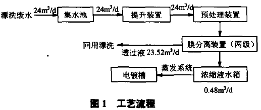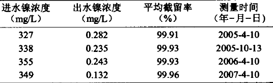 采用兩級RO膜系統對含鎳250~350 mg/L的漂洗廢水進行處理,對鎳的截留率達99.9%以上,經兩年多運管行考察,系統運行平穩,各項指標基本達到設計要求,經濟效益較為明顯,年凈收益達43.34萬元,且出水可達到回用要求。總之該工程在技術上可行,而且還產生了良好的經濟效益、社會效益和環境效益,對電鍍行業的可持續發展具有重要意義。