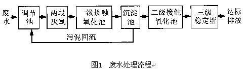 化工制藥廢水有機物含量高,且含有有機氯化物,對好氧微生物有毒性,所以在自然條件下很難降解,對環境污染嚴重。經過馴化的厭氧微生物可以破壞有機氯的長鏈結構使之斷鏈形成較小分子物質進而被生化降解。據此原理,該企業結合廠區現有坑塘的有利條件,選擇了兩段厭氧做預處理、兩級接觸氧化做主工藝處理、三級穩定塘作后序處理的工藝。其流程見圖1。