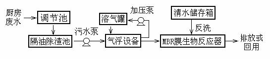 在本方案中污水處理設備,為氣浮+膜-生物反應器(Membrane Bioreactor,簡稱MBR)工藝,本工藝中的核心部分MBR是生物處理技術與膜分離技術相結合的一種新工藝,取代了傳統工藝中的二沉淀,它即可以高效地進行固液分離,得到直接使用的穩定中水,又可在生物池內維持高濃度的微生物量,工藝剩余污泥少,極有效地去除氨氮,出水懸浮物和濁度接近于零,出水中細菌和病毒被大幅度去除,能耗低,占地面積小,操作管理方便,出水可直接回用等特點,特別受到工業發達、人口面積、水資源缺乏的地區歡迎。具體參見http://m.xhxdt.com更多相關技術文檔。