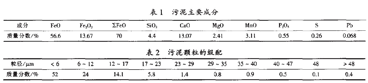 三鋼的污泥成分及顆粒級配見表1、表2。