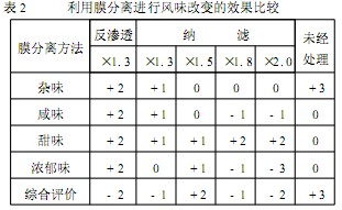 表2利用膜分離進(jìn)行風(fēng)味改變的效果比較