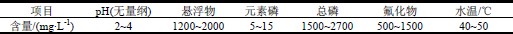 根據筆者在黃磷企業工作期間多年統計數據,除設備冷卻循環水外每噸黃磷產生廢水60~90 m3 ,主要水質指標如表1 。