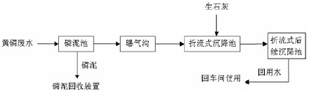 根據多年實踐經驗,針對常見黃磷廢水處理工藝存在的缺陷,筆者與同事們探索了在中和—平流沉降法基礎上的改進型黃磷廢水處理工藝,即生石灰中和—絮凝平流沉降法。