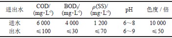 該淀粉廠的高濃度有機廢水主要來自提取、濃縮、洗滌、脫水等工藝流程中,工程設計水量為300m3/d。設計出水水質按污水綜合排放標準(GB8978-1996)一級標準進行設計。具體設計進出水質如表1 所示。