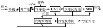 甘肅省定西市某淀粉廠以馬鈴薯為原料生產淀粉,每天排放廢水約300 m3,廢水中主要含有纖維、淀粉、蛋白質、有機酸等高濃度有機物。其COD含量較高,通常在5 000 mg/L 以上,SS 質量濃度一般在1 000 mg/L 以上。如果將廢水直接排進水體,會給周邊生態環境帶來較大的污染。根據該工程實際情況,采用氣浮+UASB+SBR 相結合的技術處理廢水達到了良好的效果。
